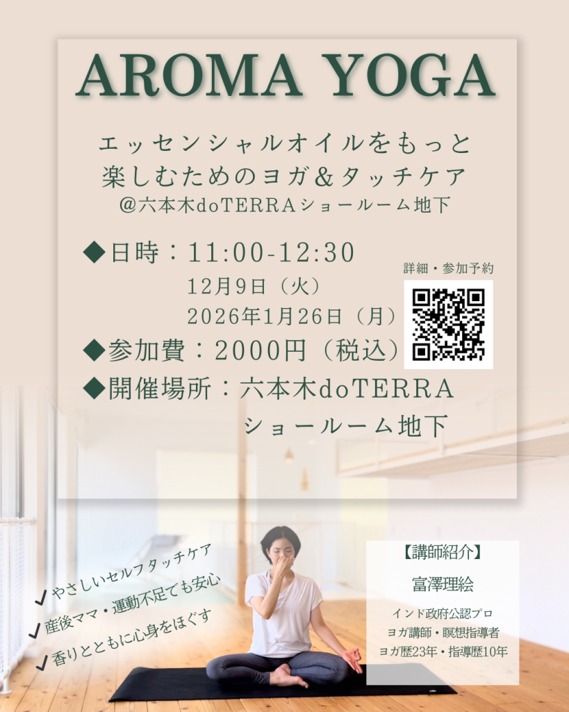 「香り×セルフタッチ×ヨガ」のクラスを開催します。