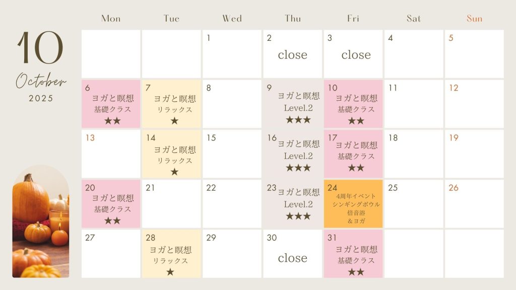 10月3日(金)ヨガと瞑想(基礎クラス)