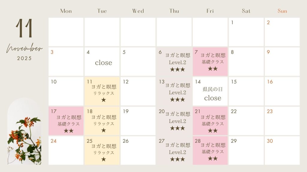 11月4日(火)ヨガと瞑想(リラックスセルフケア)