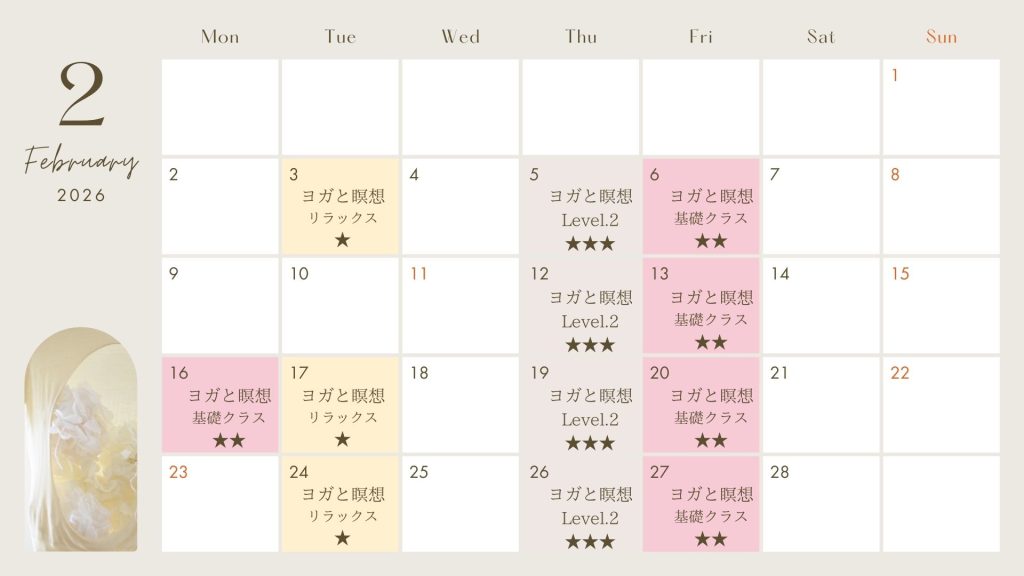 2月5日(木)【ヨガと瞑想 (深めるためのヨガと瞑想)】第3セミナールーム
